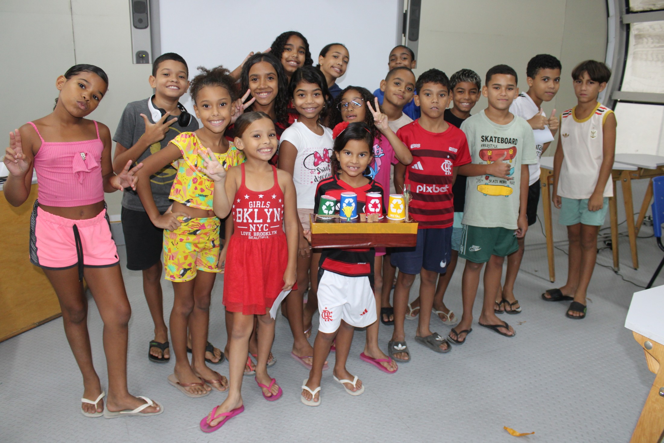 Ao longo das atividades, cada unidade desenvolveu um projeto autoral, apresentado no encerramento da colônia, com produções feitas integralmente a partir de materiais recicláveis, estimulando o trabalho em equipe, o pensamento crítico e a consciência ambiental.